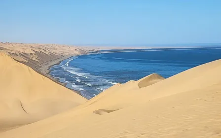 Walvis Bay is a captivating port of call where golden dunes meet the deep blue ocean.